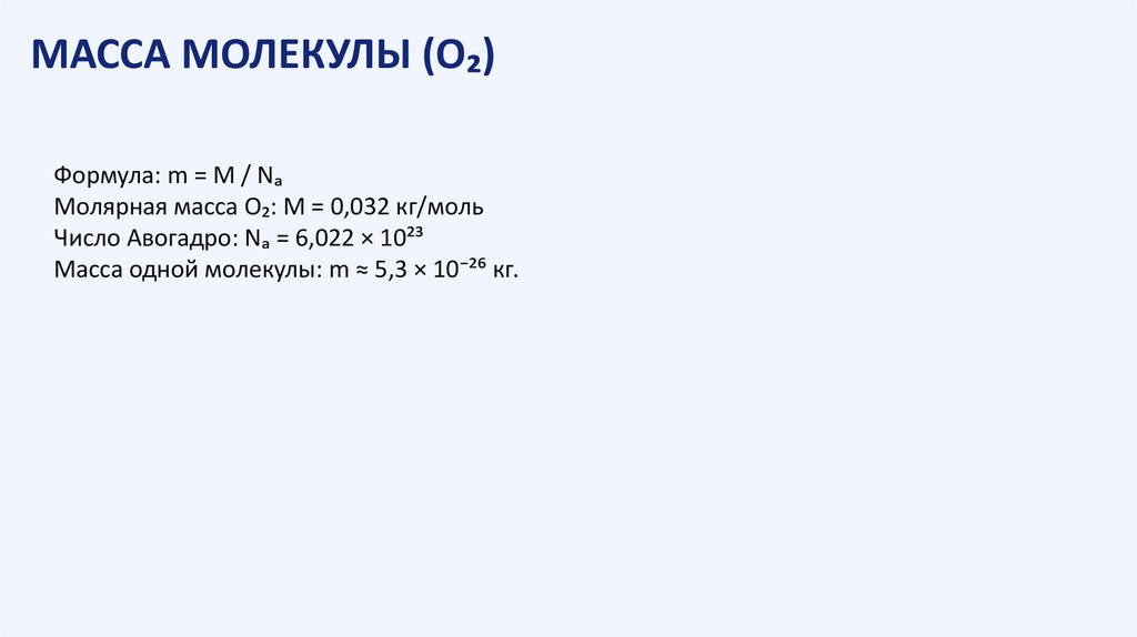 Масса одной молекулы: m ≈ 5,3 × 10⁻²⁶ кг.