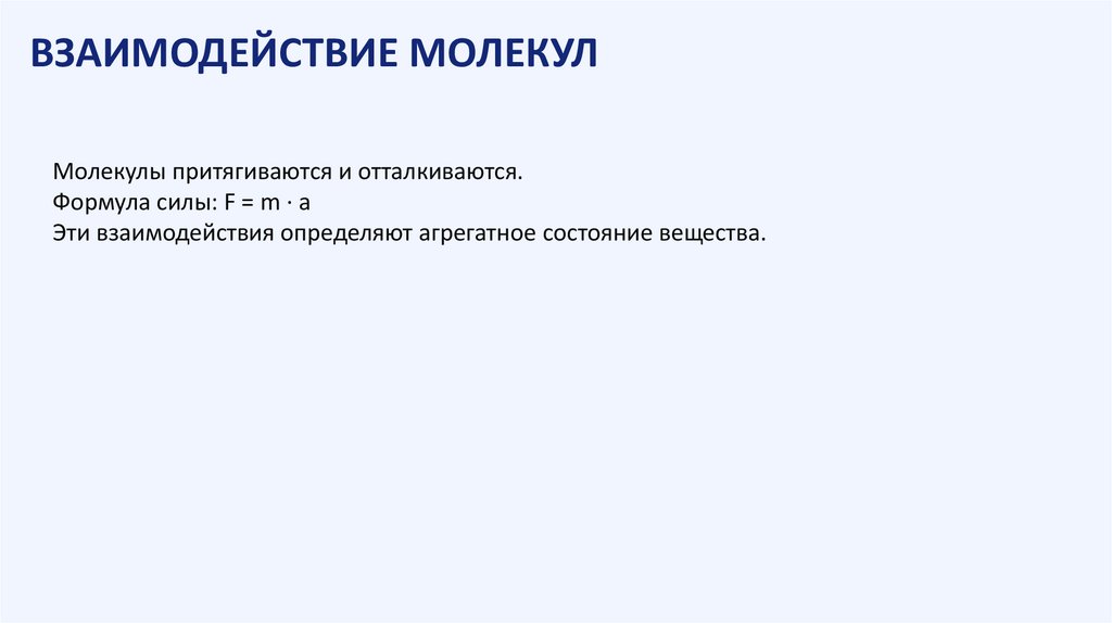 ВЗАИМОДЕЙСТВИЕ МОЛЕКУЛМолекулы притягиваются и отталкиваются.