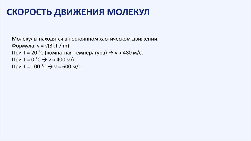 СКОРОСТЬ ДВИЖЕНИЯ МОЛЕКУЛМолекулы находятся в постоянном хаотическом движении.