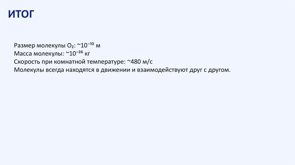 ИТОГРазмер молекулы O₂: ~10⁻¹⁰ м