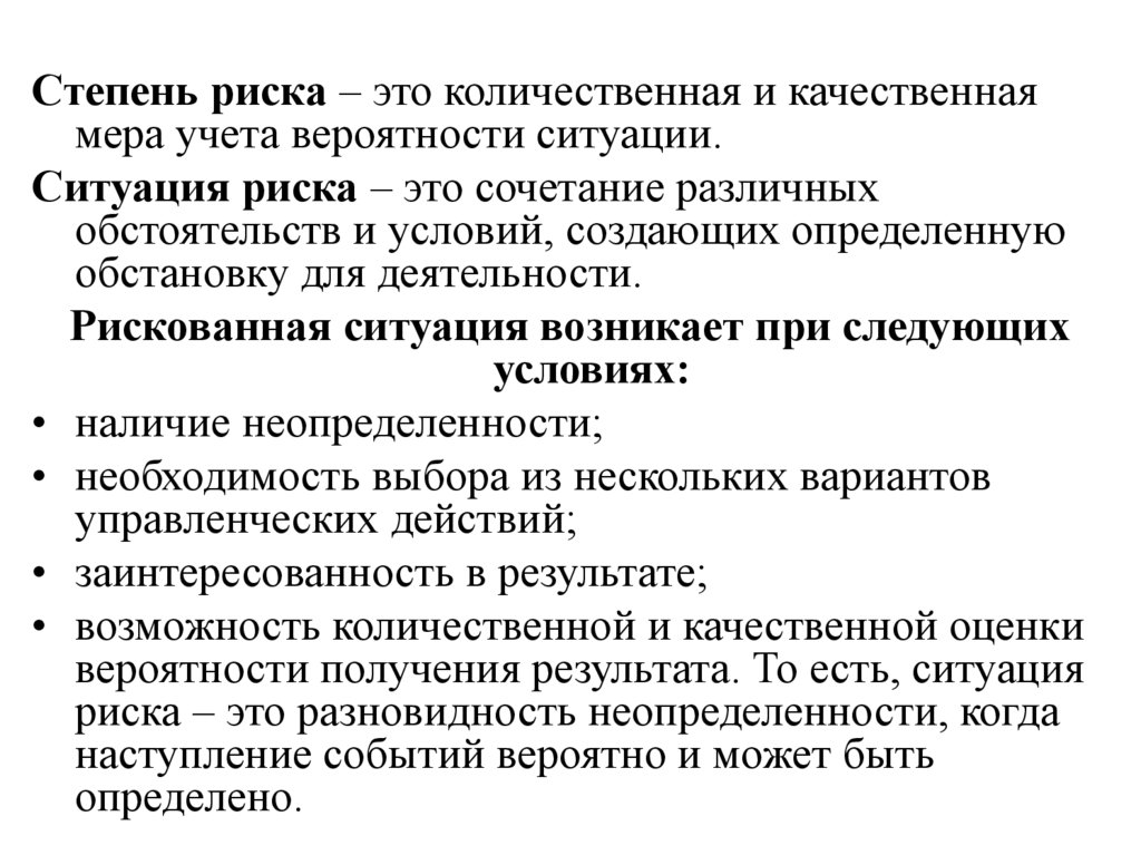 Фактор риска - условия, обстоятельства, в рамкахкоторых проявляются причины риска и которые