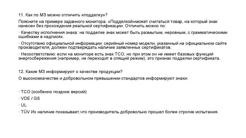 11. Как по МЗ можно отличить «подделку»?Поясните на примере заданного монитора. «Подделкой»может считаться товар, на который знак