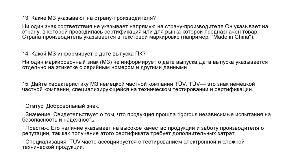15. Дайте характеристику МЗ немецкой частной компании TÜV. TÜV— это знак немецкой