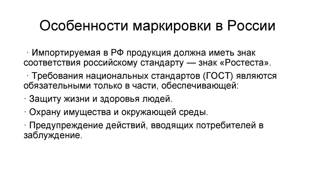 Особенности маркировки в России· Импортируемая в РФ продукция должна иметь знак