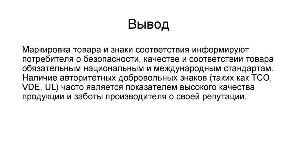 Краткие теоретические сведенияТребования к маркировке товаров и знаки соответствия