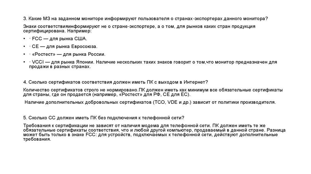 3. Какие МЗ на заданном мониторе информируют пользователя о странах-экспортерах данного монитора?Знаки соответствияинформируют не о стране-экспортере, а о том, для рынков каких стран продукция
