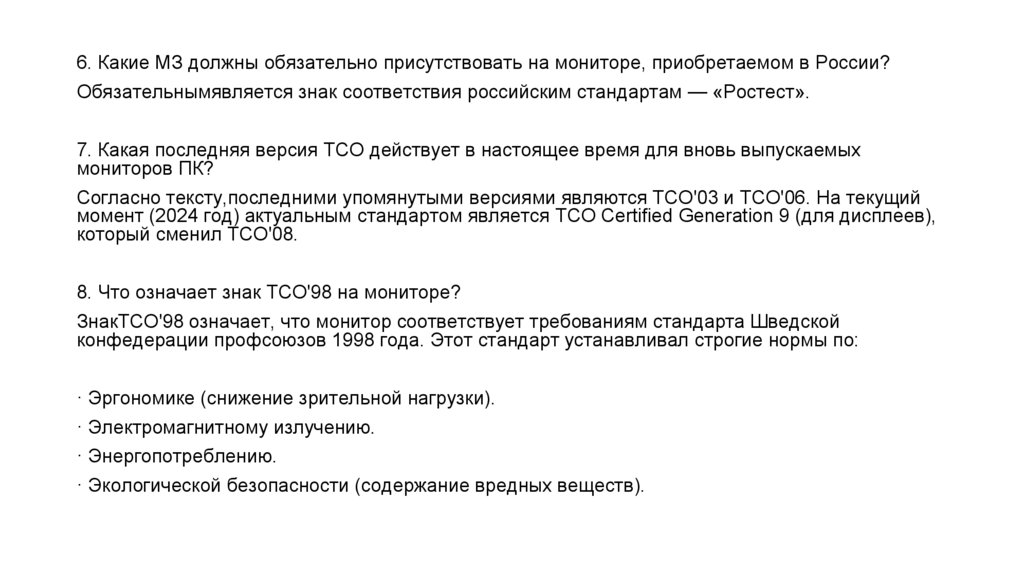 6. Какие МЗ должны обязательно присутствовать на мониторе, приобретаемом в России?Обязательнымявляется знак соответствия российским стандартам — «Ростест».