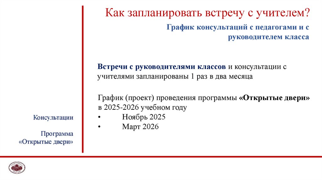 Как запланировать встречу с учителем?График консультаций с педагогами и с