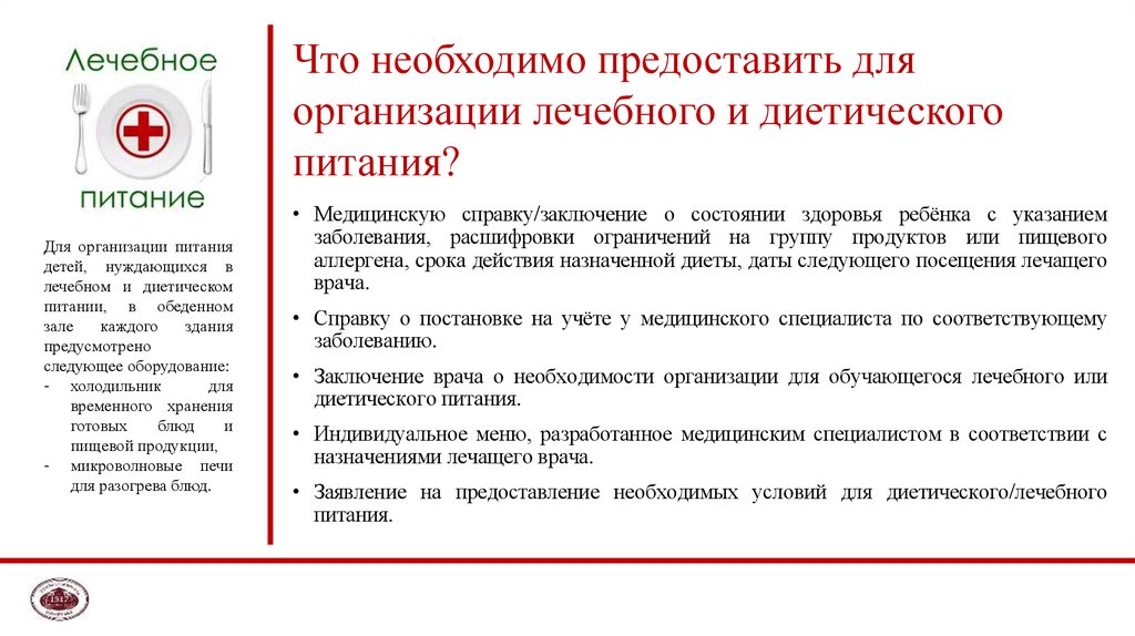 • Заявление на предоставление необходимых условий для диетического/лечебного