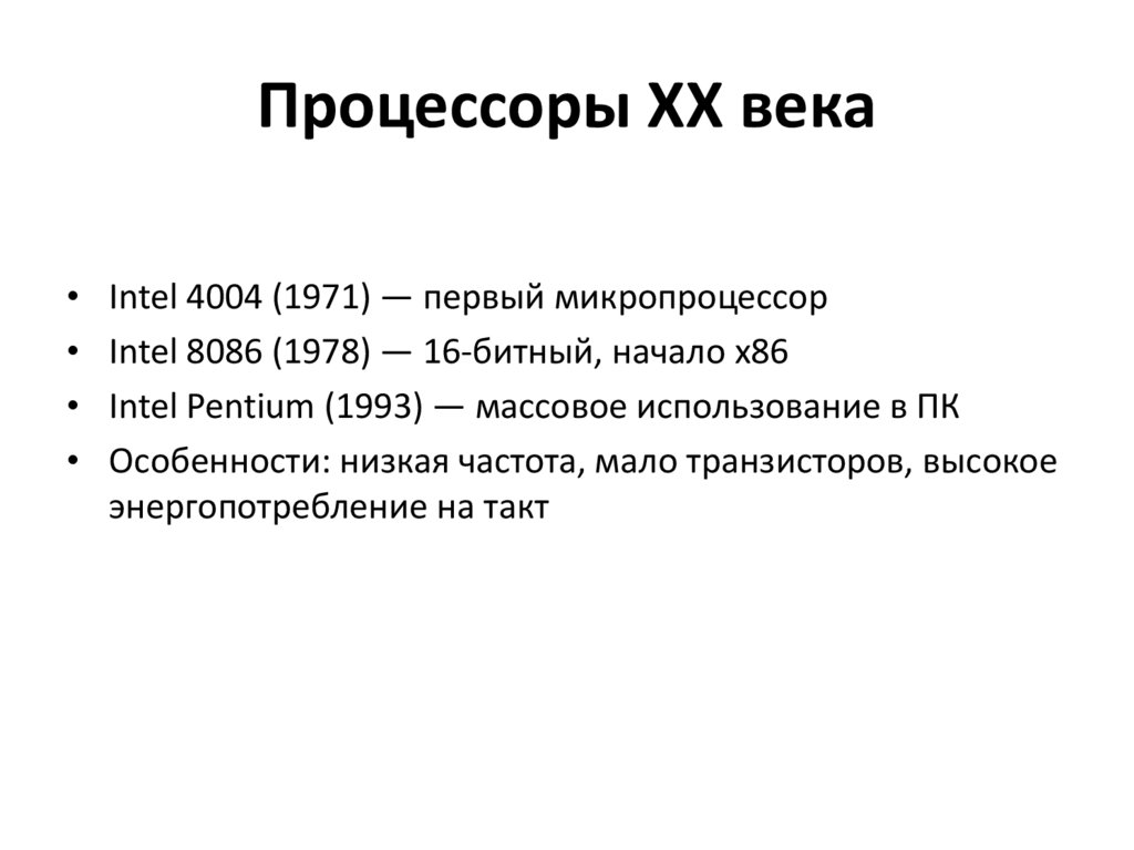 Процессоры XX векаIntel 4004 (1971) — первый микропроцессор