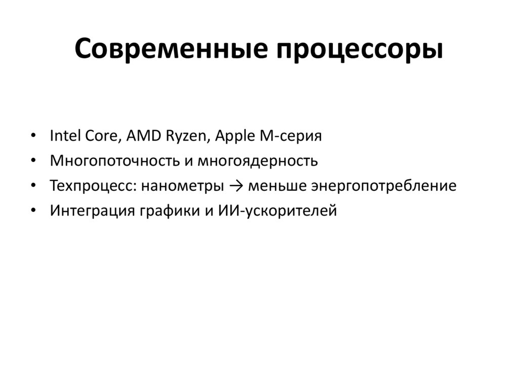 Современные процессорыIntel Core, AMD Ryzen, Apple M-серия