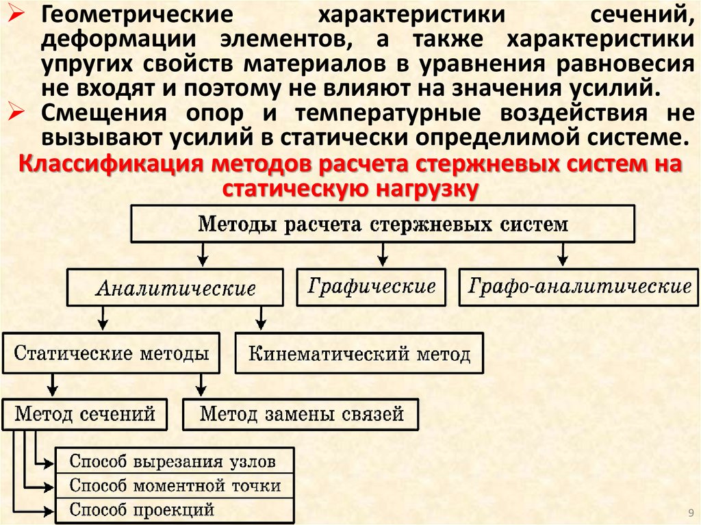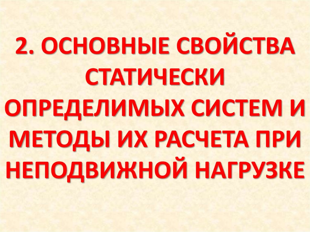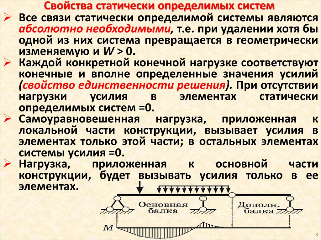 2-. Основные свойства статически определимых систем и методы их расчета при неподвижной нагрузке