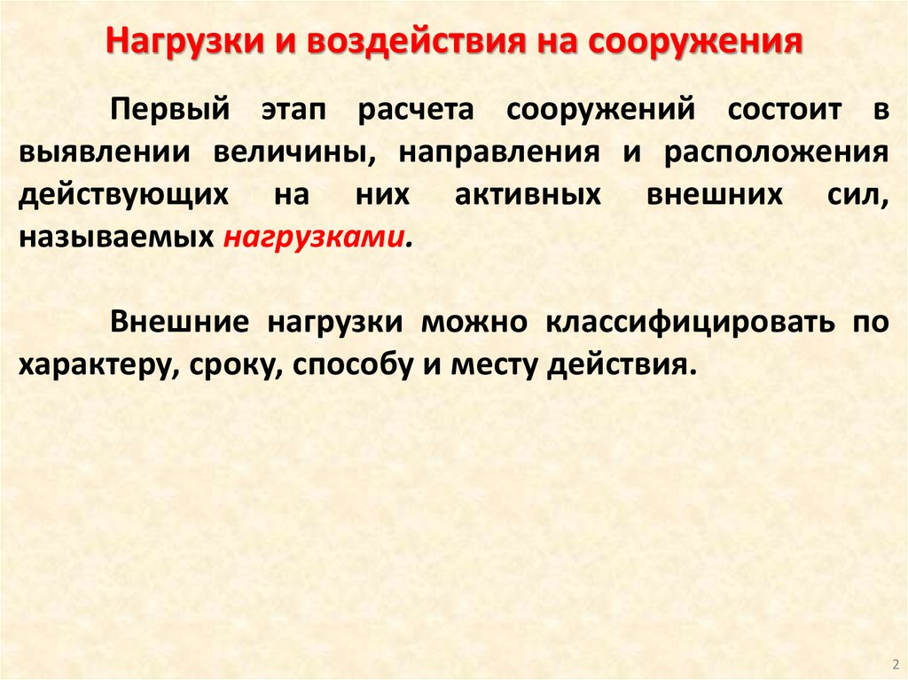 Нагрузки и воздействия на сооруженияПервый этап расчета сооружений состоит в