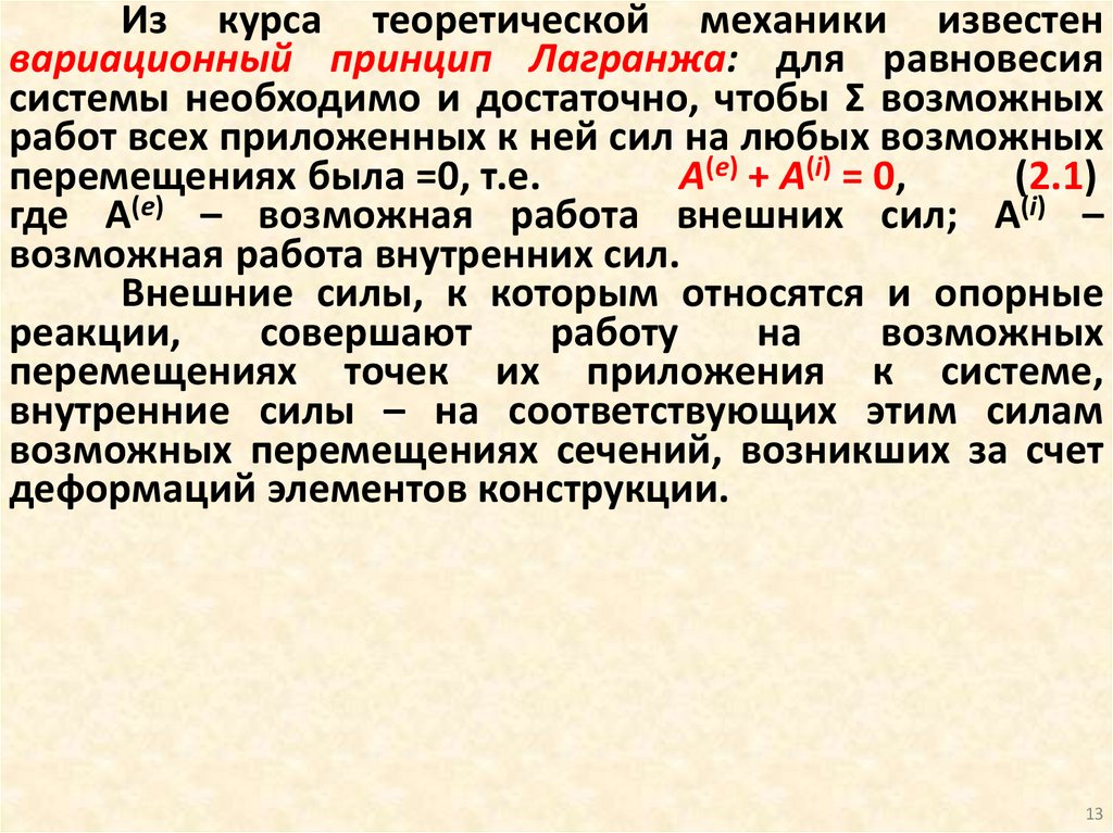 Из курса теоретической механики известенвариационный принцип Лагранжа: для равновесия
