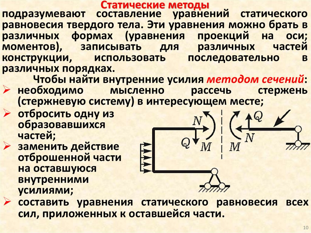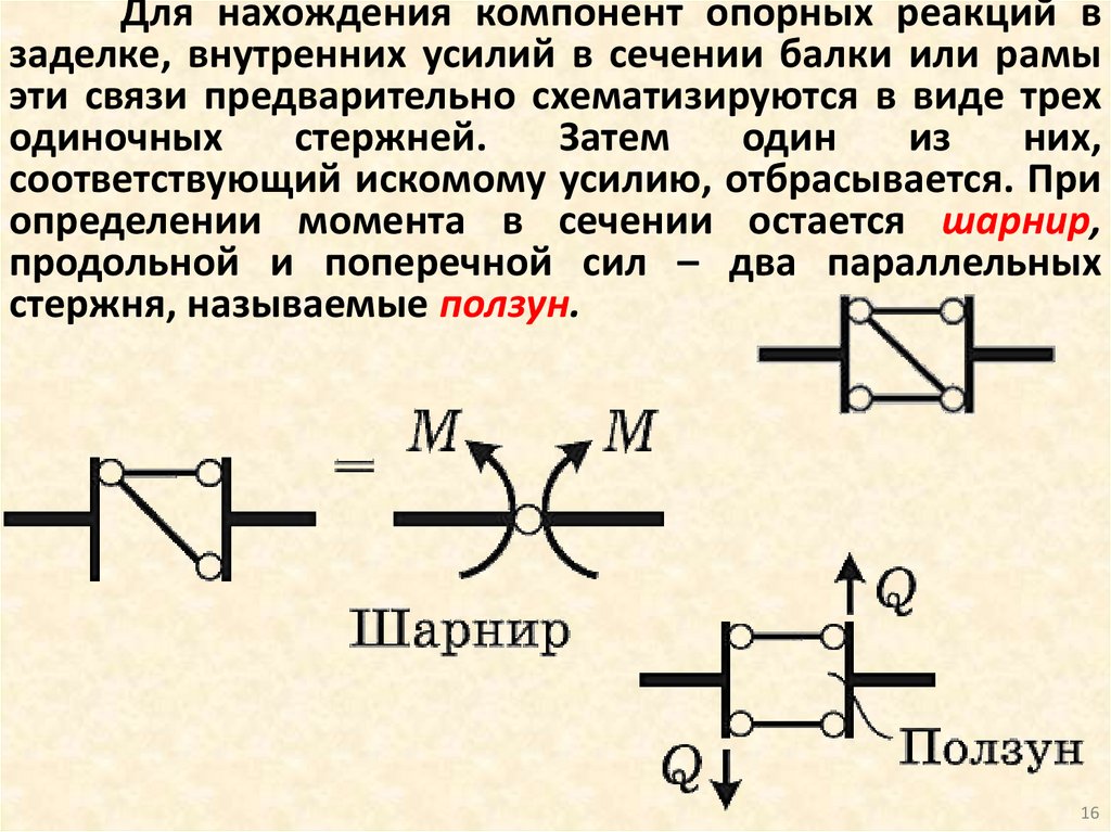 Для нахождения компонент опорных реакций взаделке, внутренних усилий в сечении балки или рамы