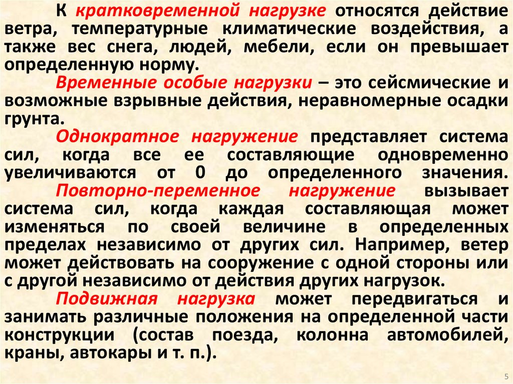К кратковременной нагрузке относятся действиеветра, температурные климатические воздействия, а
