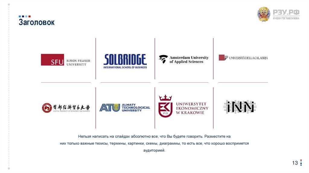 ЗаголовокНельзя написать на слайдах абсолютно все, что Вы будете говорить. Разместите на