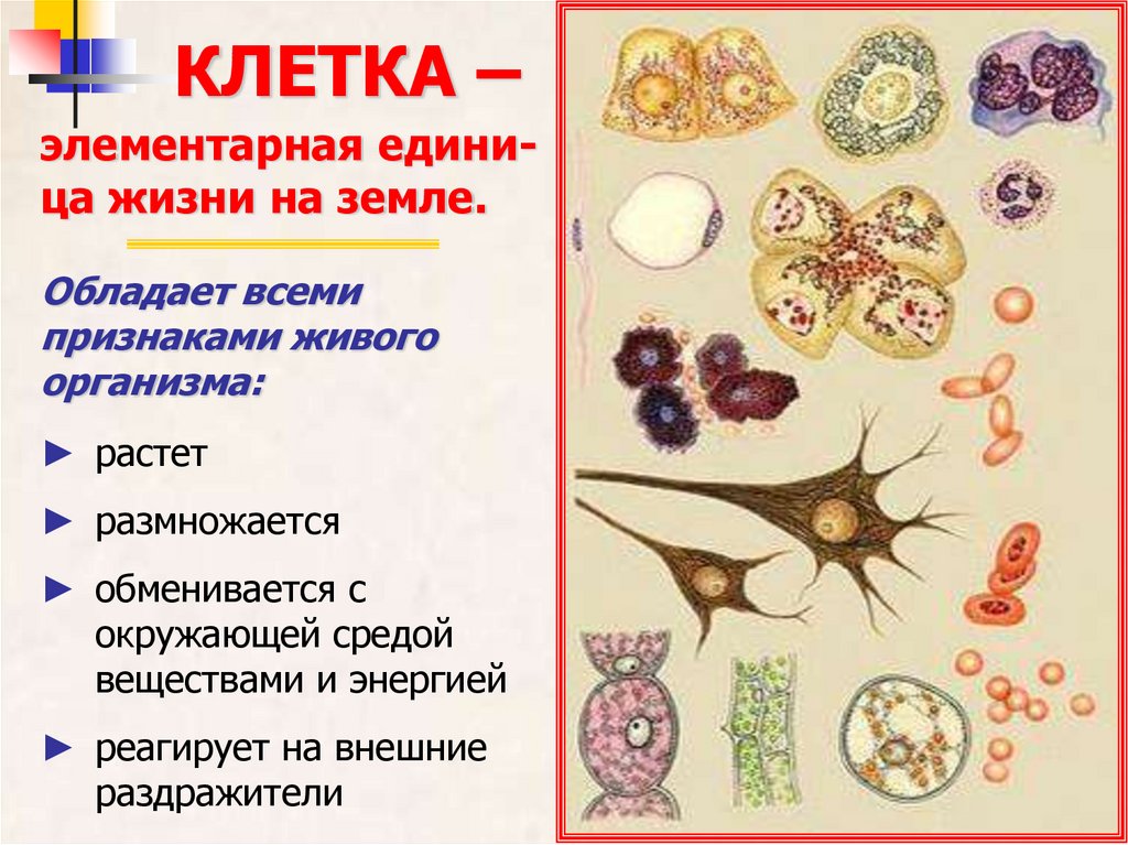 1. Клетка - единица строения, жизнедеятельности, роста и развитияживых организмов, вне клетки жизни нет;