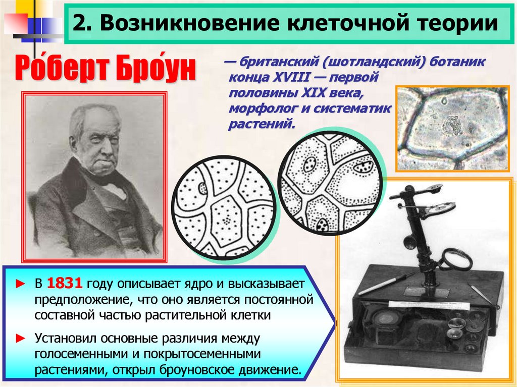 2. Возникновение клеточной теорииРо́берт Бро́ун