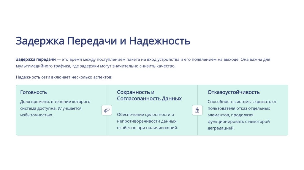 Задержка Передачи и НадежностьЗадержка передачи — это время между поступлением пакета на вход устройства и его появлением на выходе. Она важна для