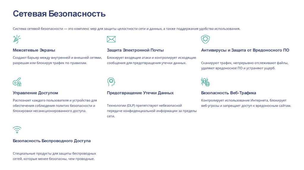 Сетевая БезопасностьСистема сетевой безопасности — это комплекс мер для защиты целостности сети и данных, а также поддержания удобства использования.
