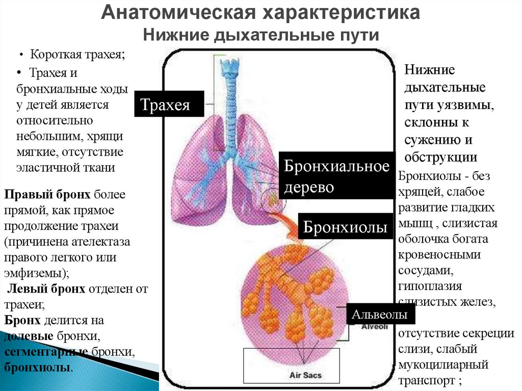 Анатомическая характеристика• Короткая трахея;