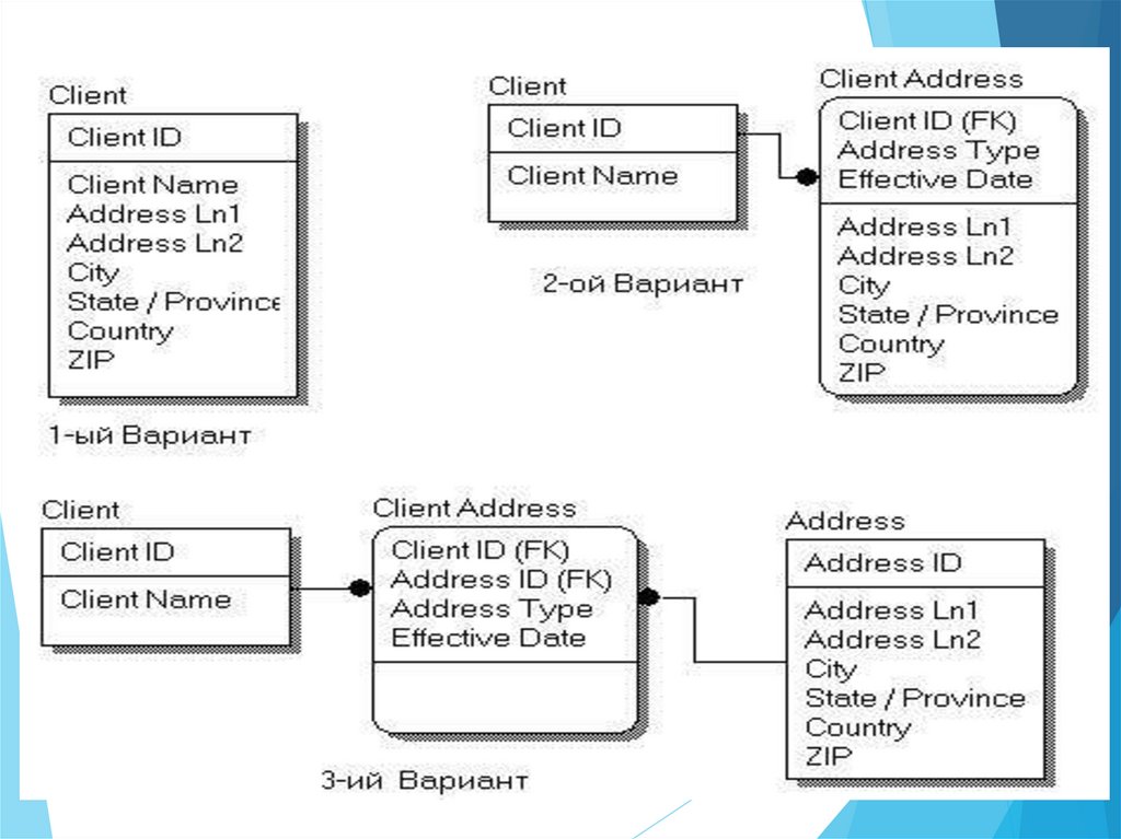o каждая таблица содержит в себеинформацию о некоторой реальной системе