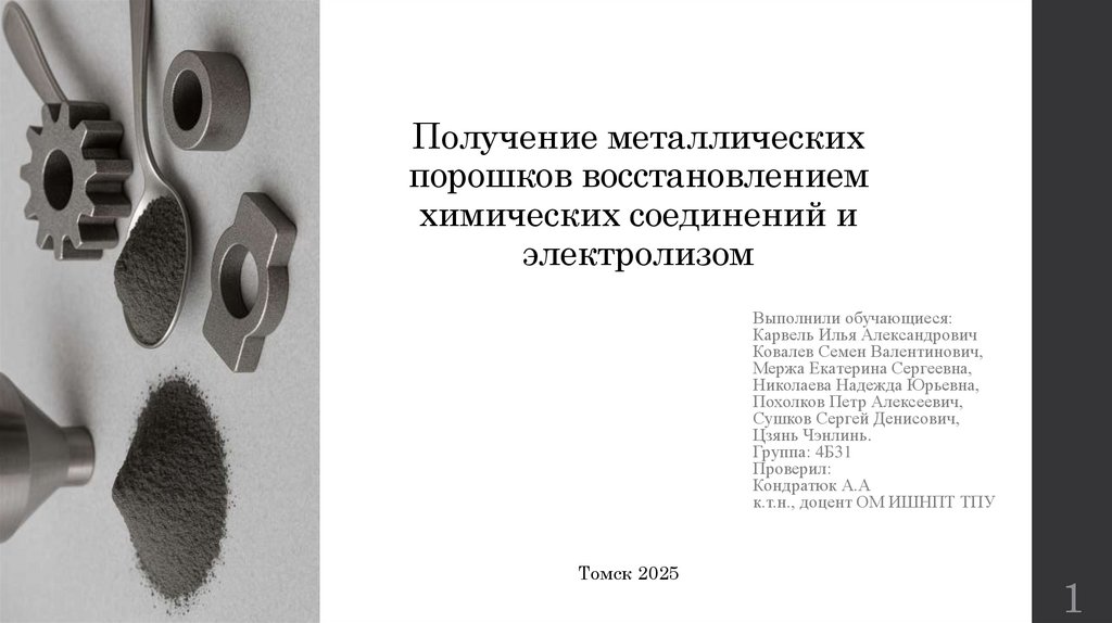 1. Получение металлических порошков восстановлением химических соединений и электролизом