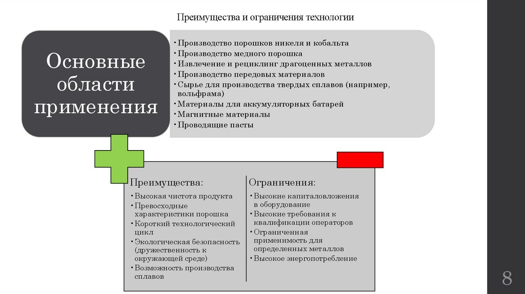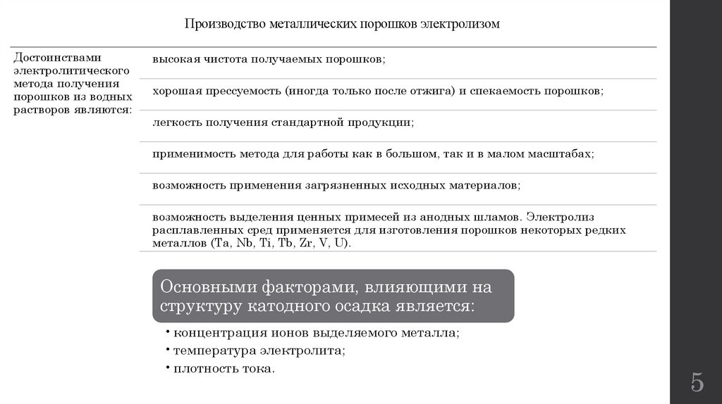 хорошая прессуемость (иногда только после отжига) и спекаемость порошков;