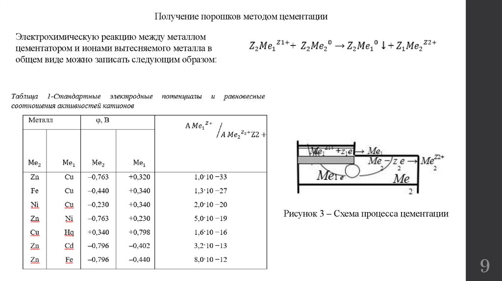 Получение порошков методом цементацииЭлектрохимическую реакцию между металлом