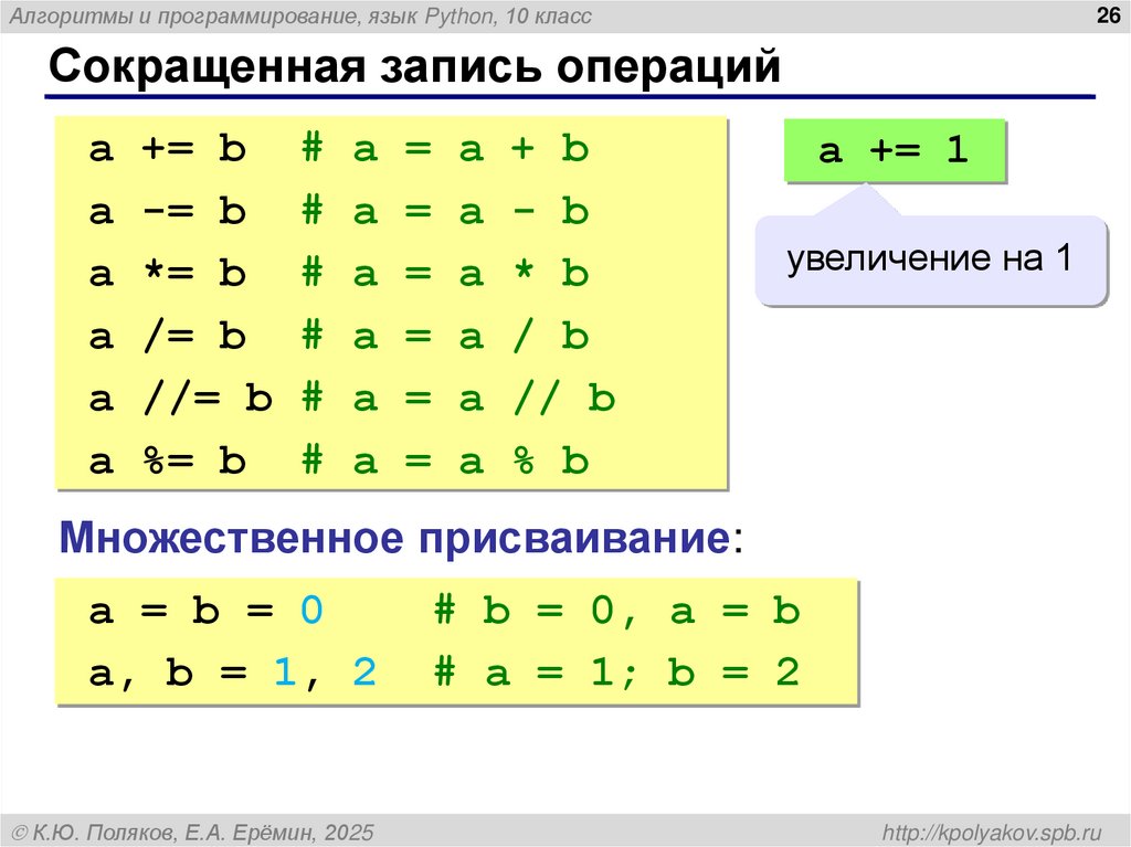 Сокращенная запись операций