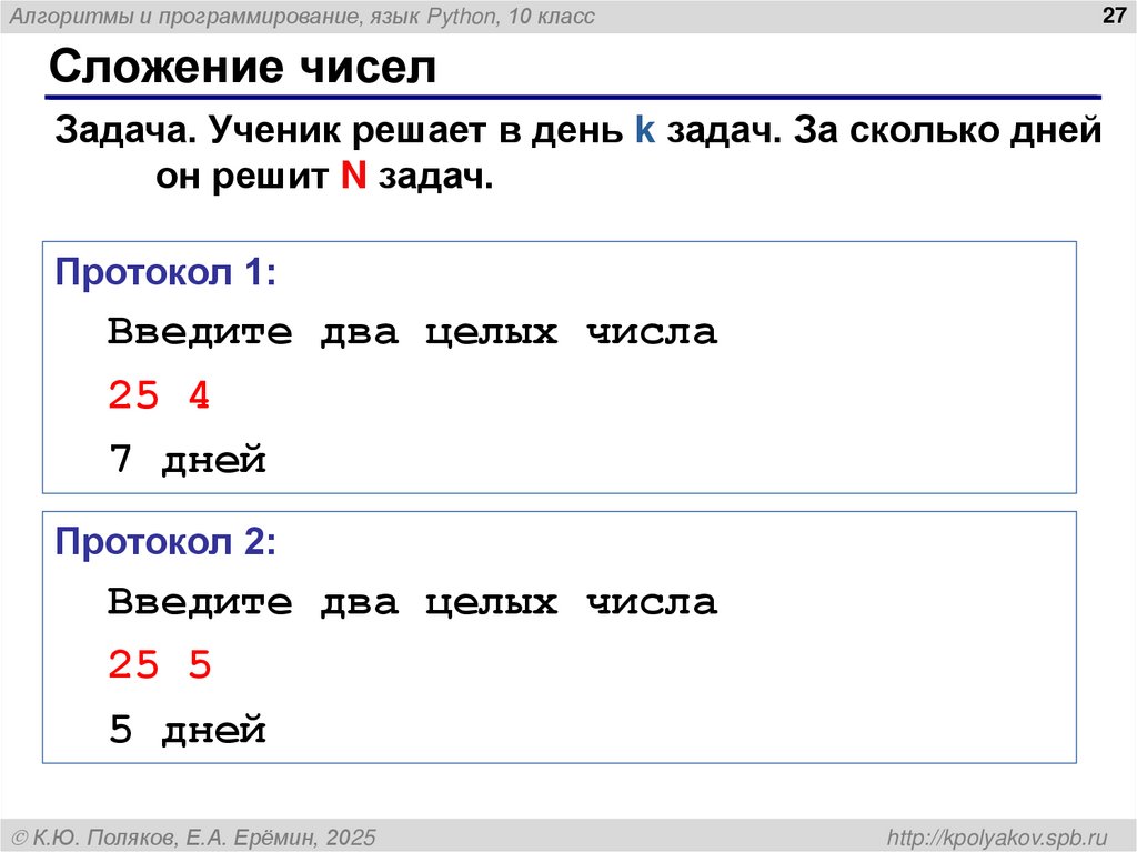 Задача. Ученик решает в день k задач. За сколько дней