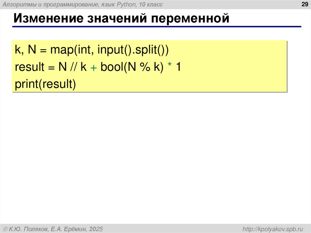result = N // k + bool(N % k) * 1