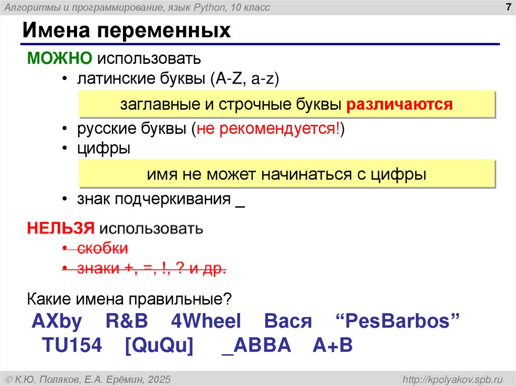 Имена переменных
