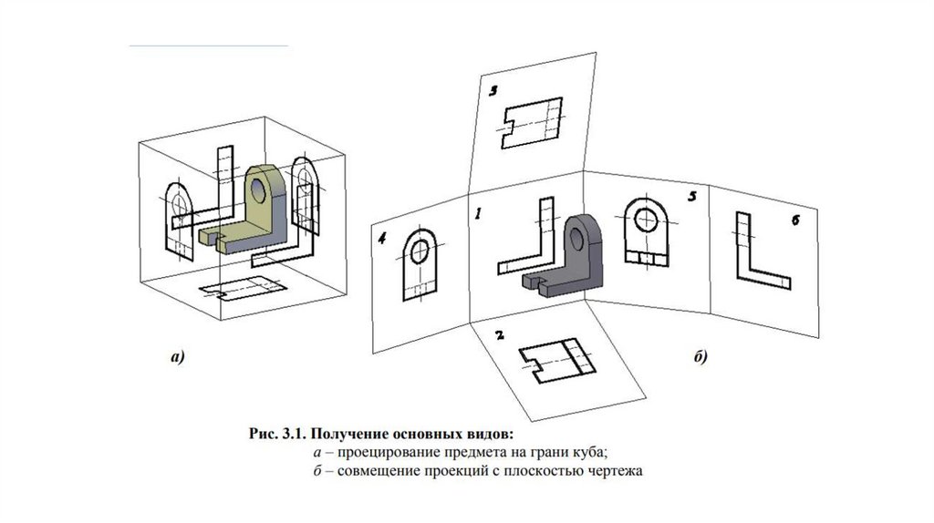 • Для получения основных видов изображаемый предмет