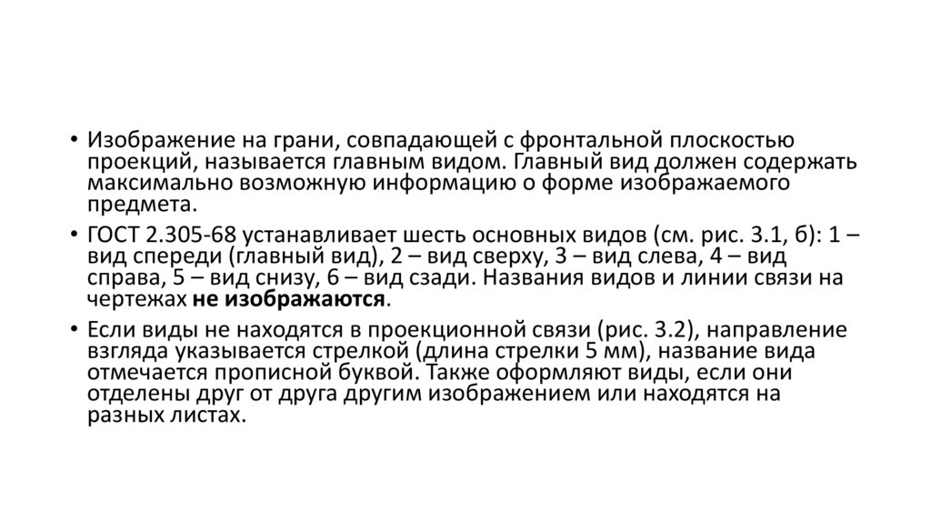 • ГОСТ 2.305-68 устанавливает шесть основных видов (см. рис. 3.1, б): 1 –