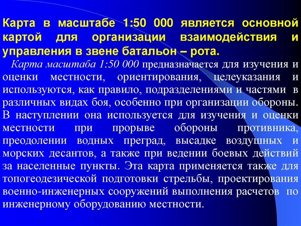 Карта в масштабе 1:50 000 является основнойкартой для организации взаимодействия и