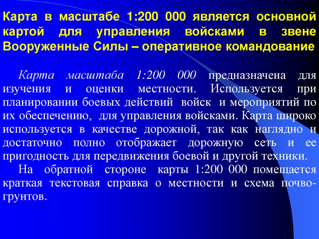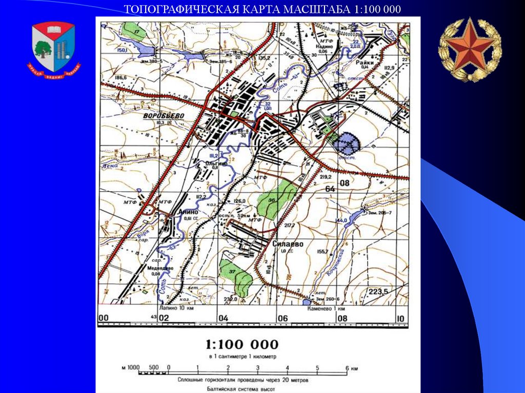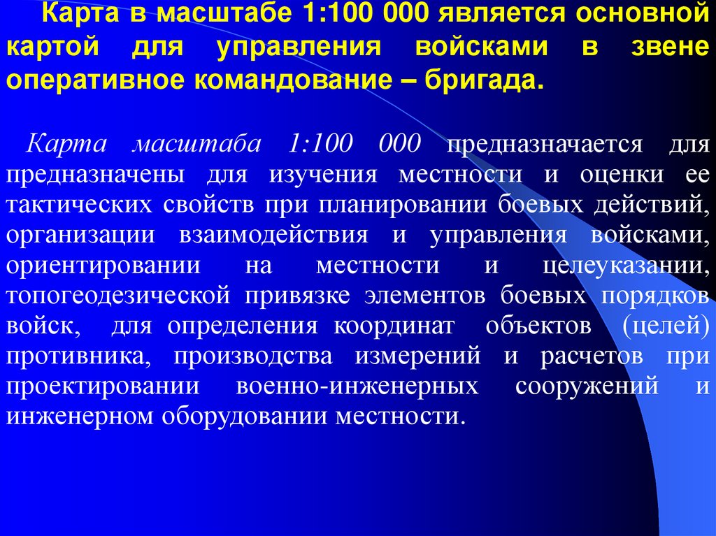 Карта в масштабе 1:100 000 является основнойкартой для управления войсками в звене