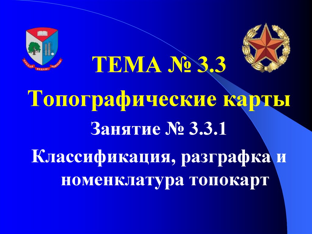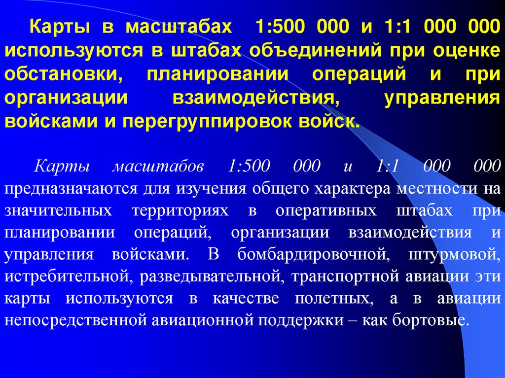• Классификация топографических карт по масштабу и основномупредназначению для различных командно-штабных звеньев приведена