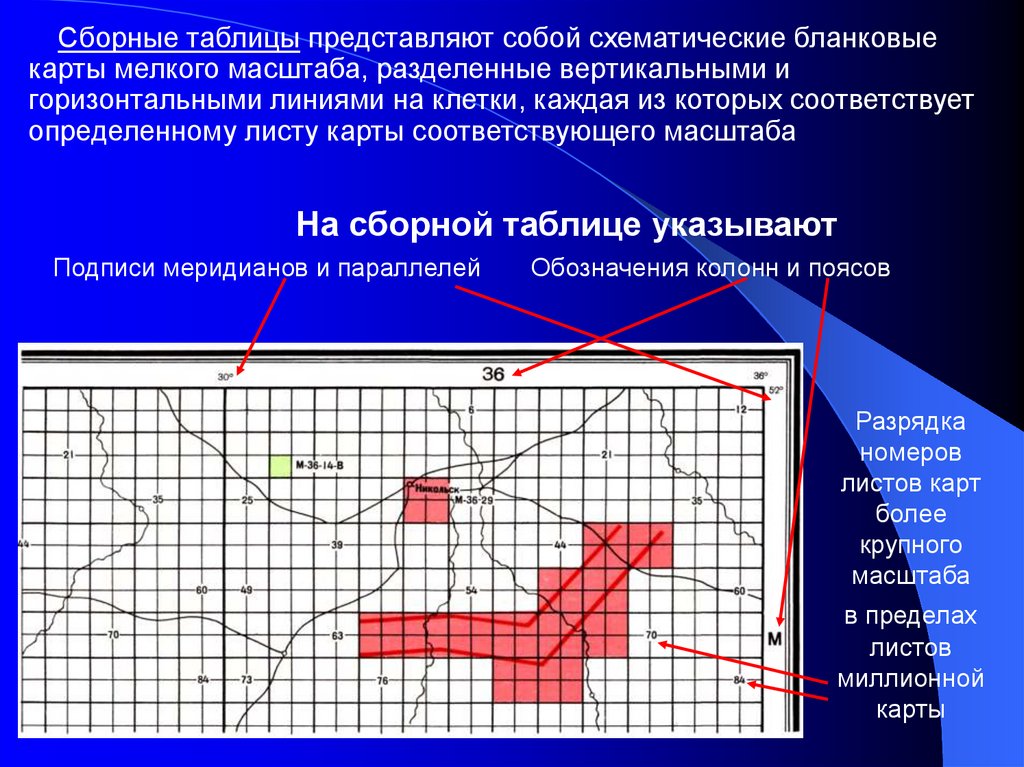 Сборные таблицы представляют собой схематические бланковыекарты мелкого масштаба, разделенные вертикальными и