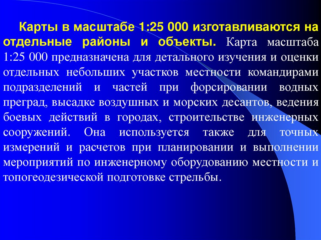 Карты в масштабе 1:25 000 изготавливаются наотдельные районы и объекты. Карта масштаба
