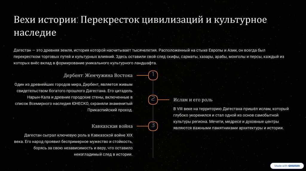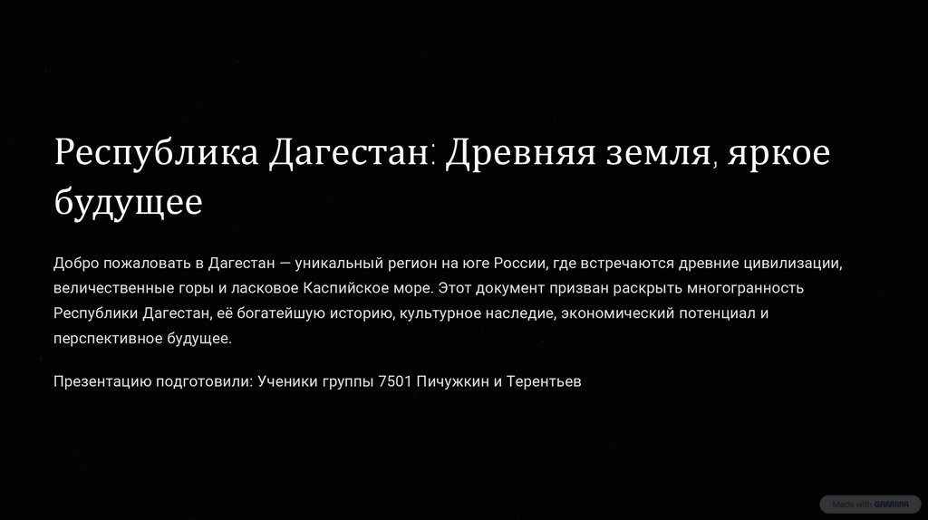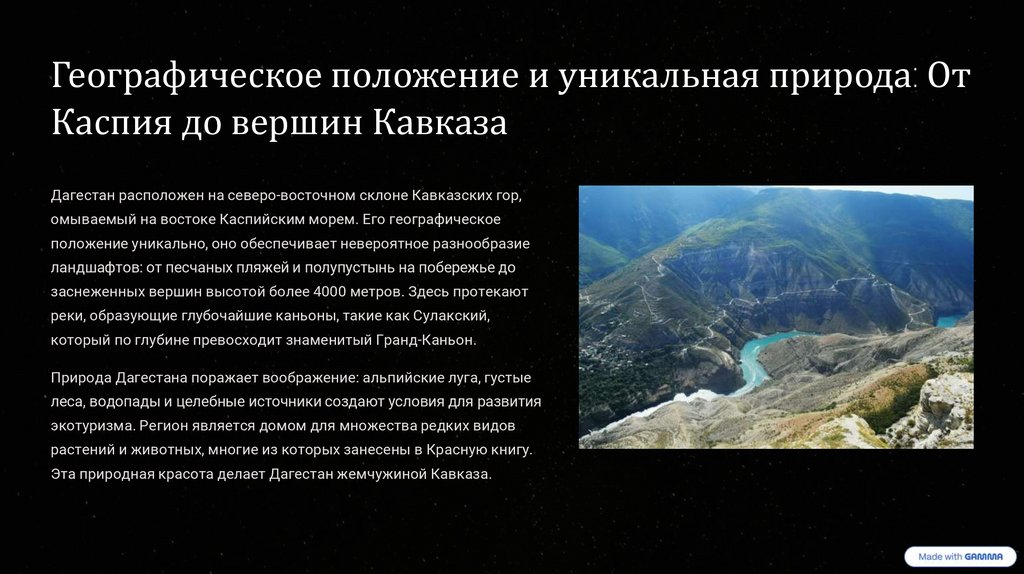 величественные горы и ласковое Каспийское море. Этот документ призван раскрыть многогранность
