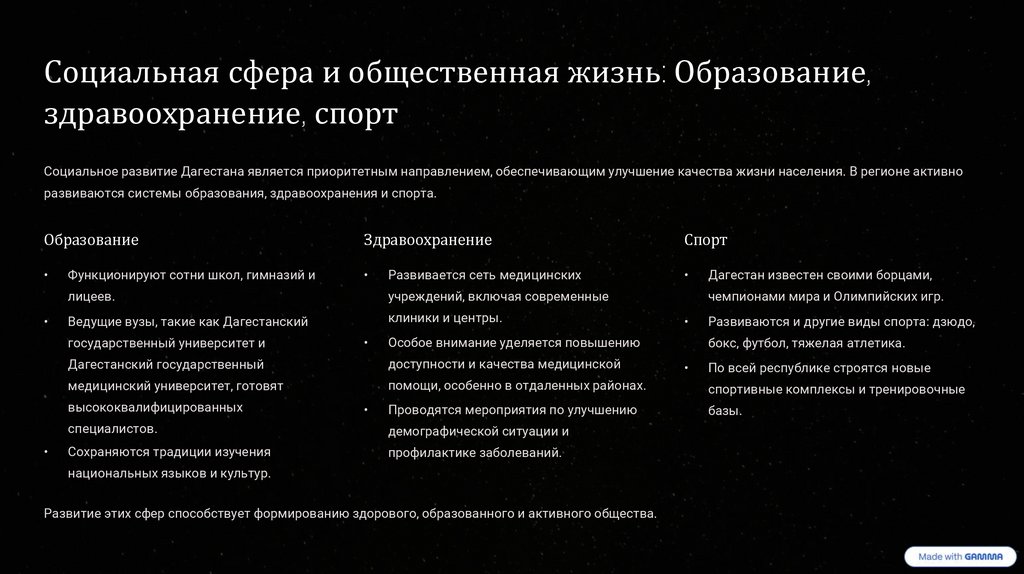 Развитие этих сфер способствует формированию здорового, образованного и активного общества.