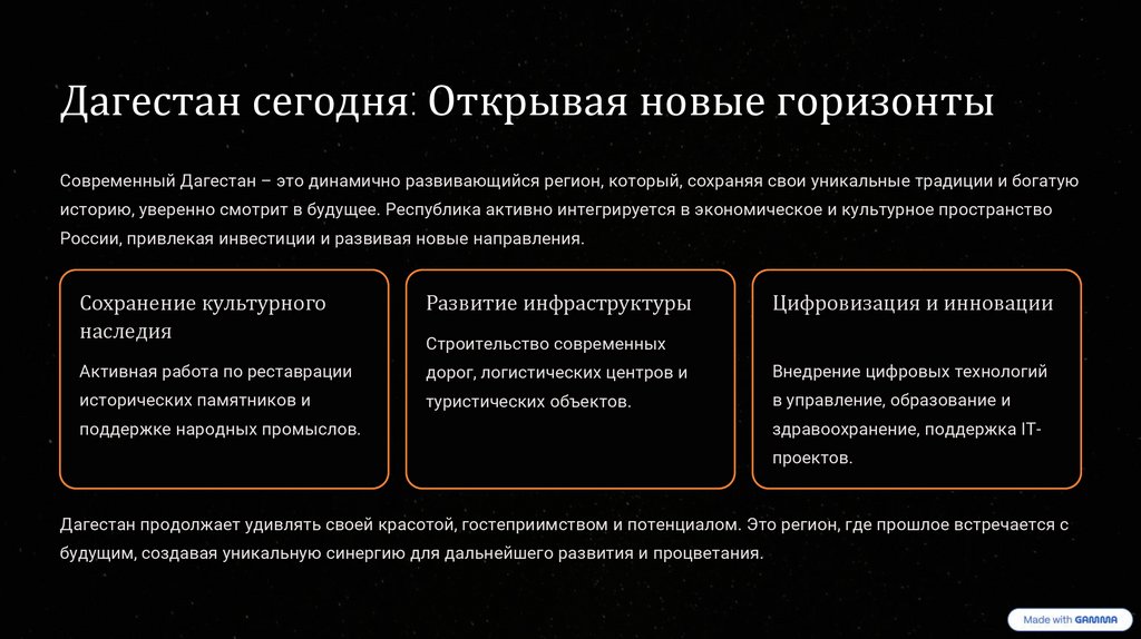Дагестан сегодня: Открывая новые горизонтыСовременный Дагестан – это динамично развивающийся регион, который, сохраняя свои уникальные традиции и богатую