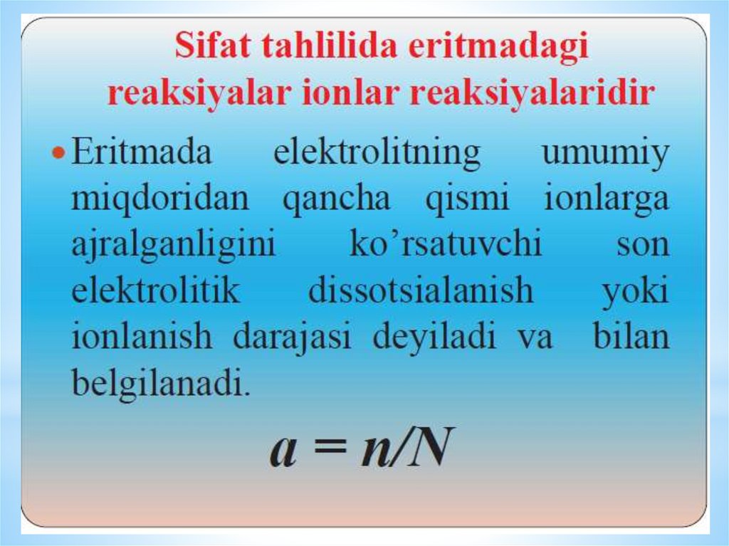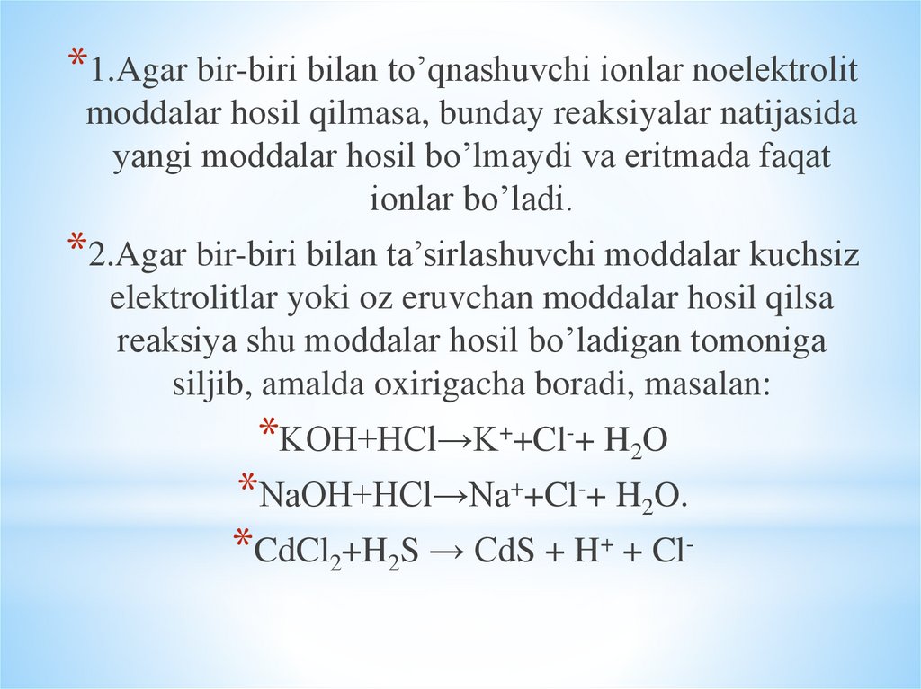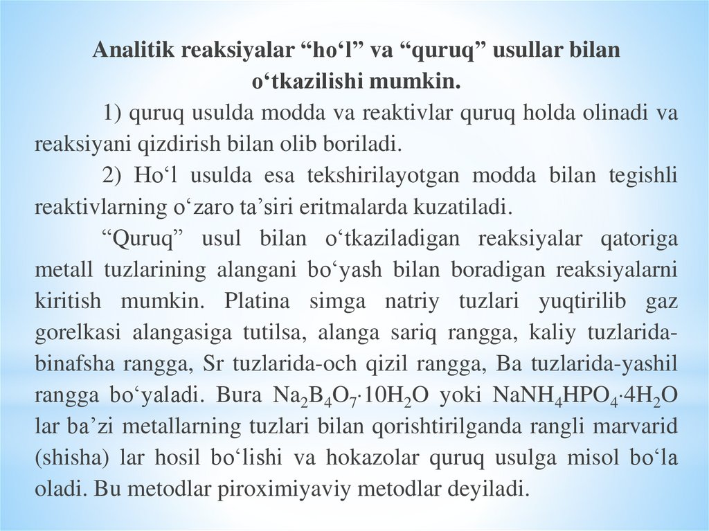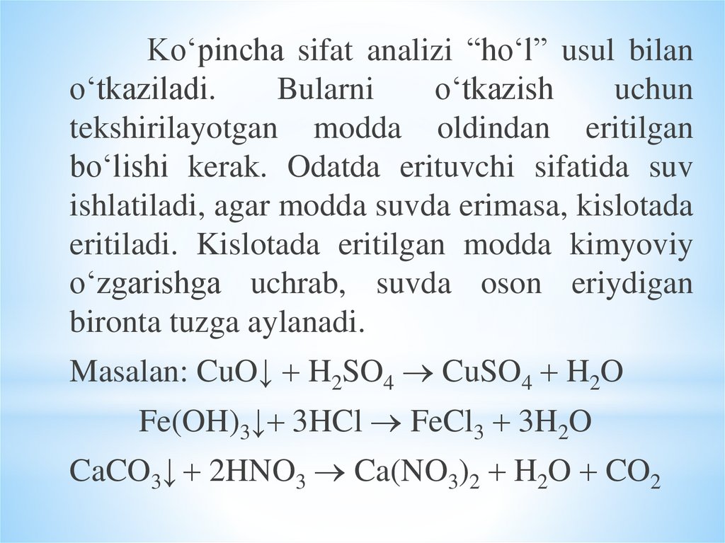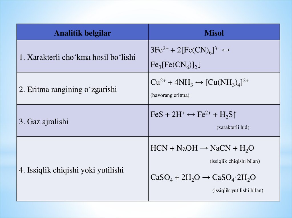 * 1. Cho‘ktirish reaksiyalarida – cho‘kma hosil bo‘lishini oldindan