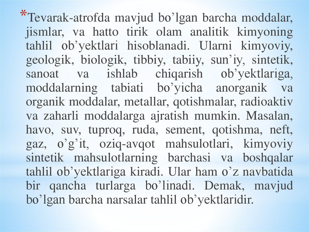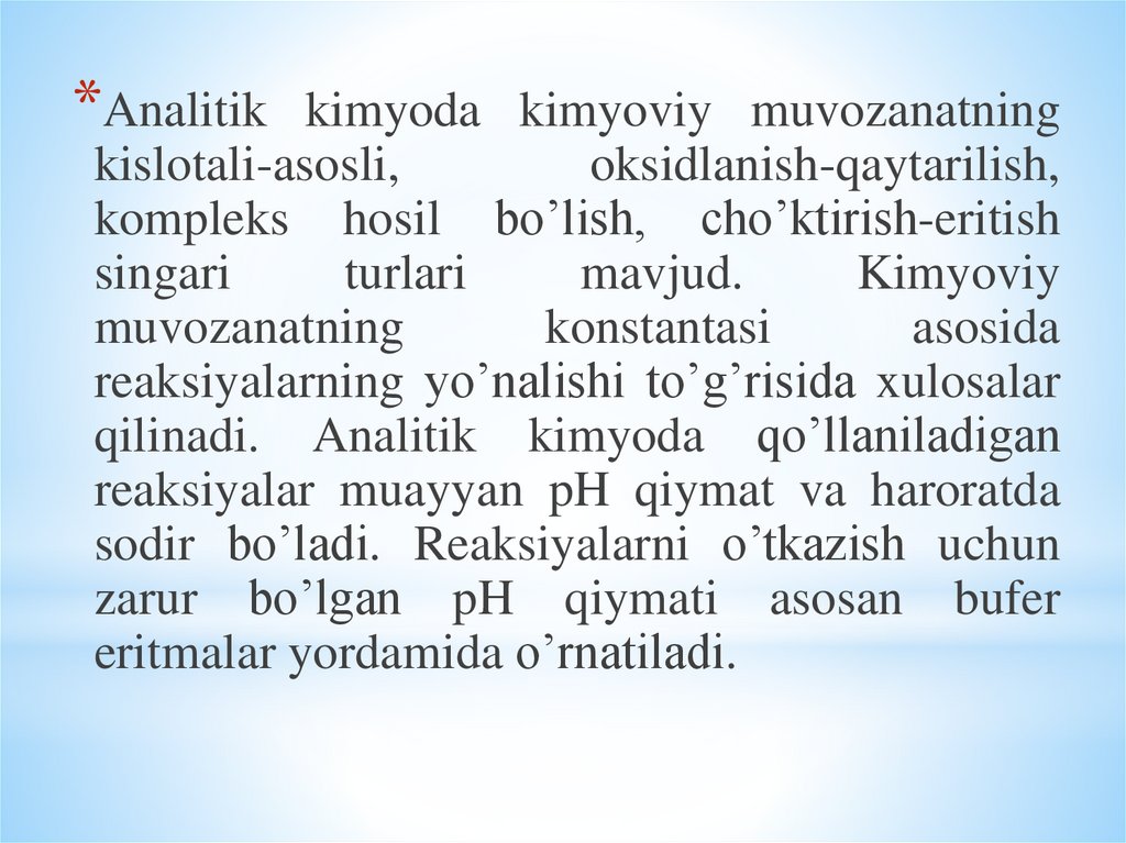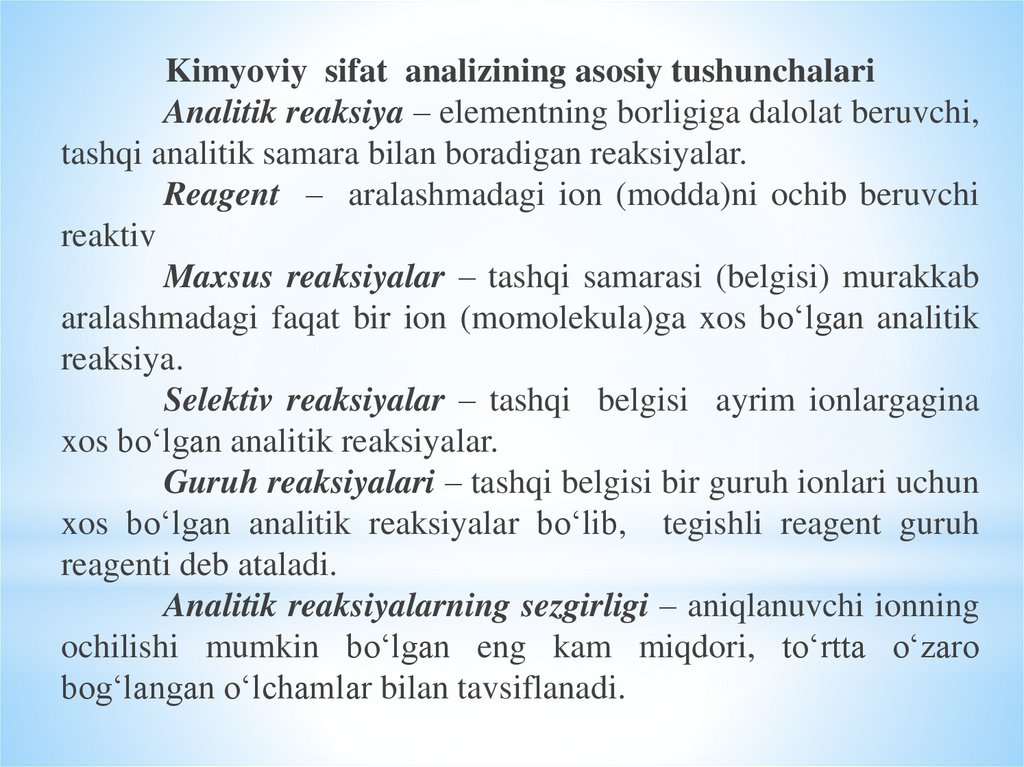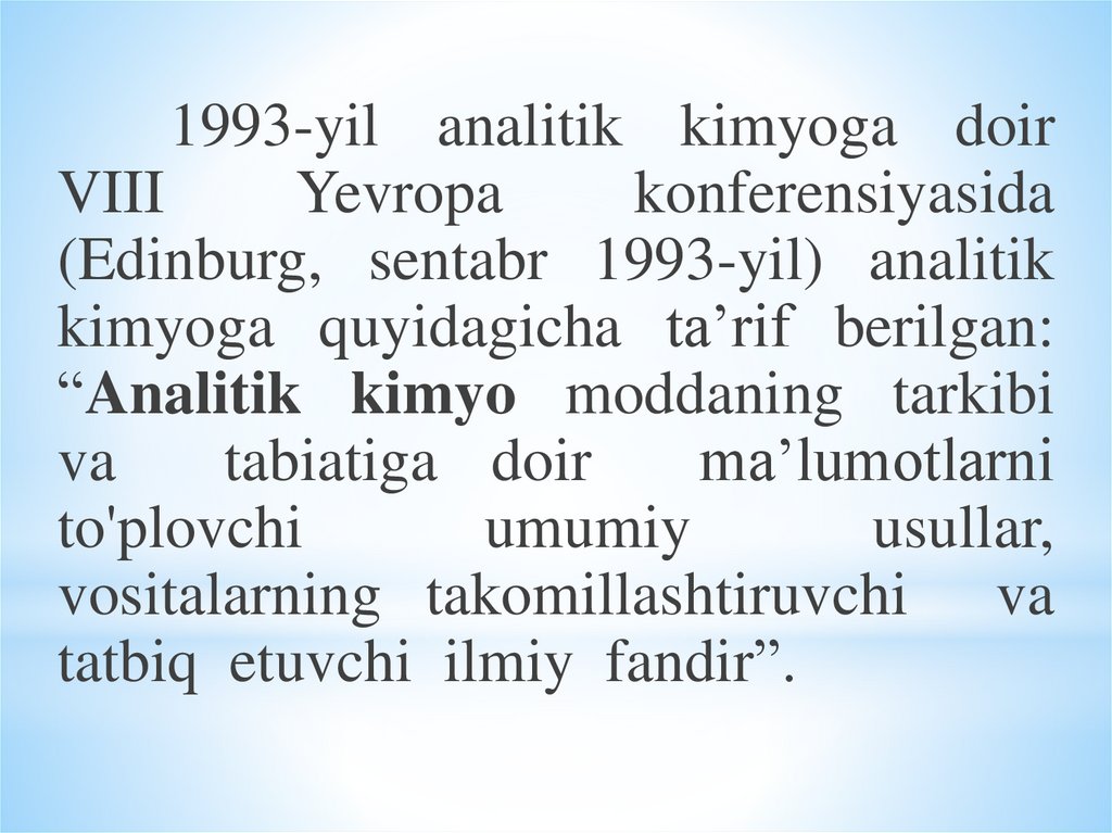 ANALITIK KIMYO FANIDANTAQDIMOT