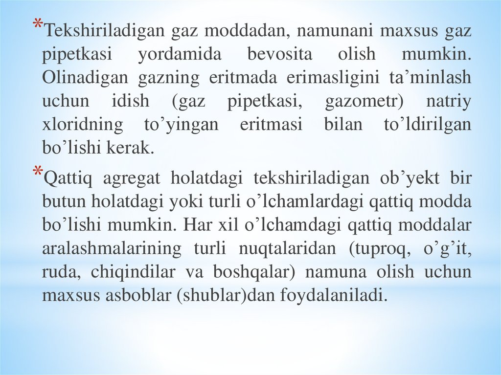 2. Moddiy analiz – analiz qilinadigan komponentning bor yoki yo‘qligini