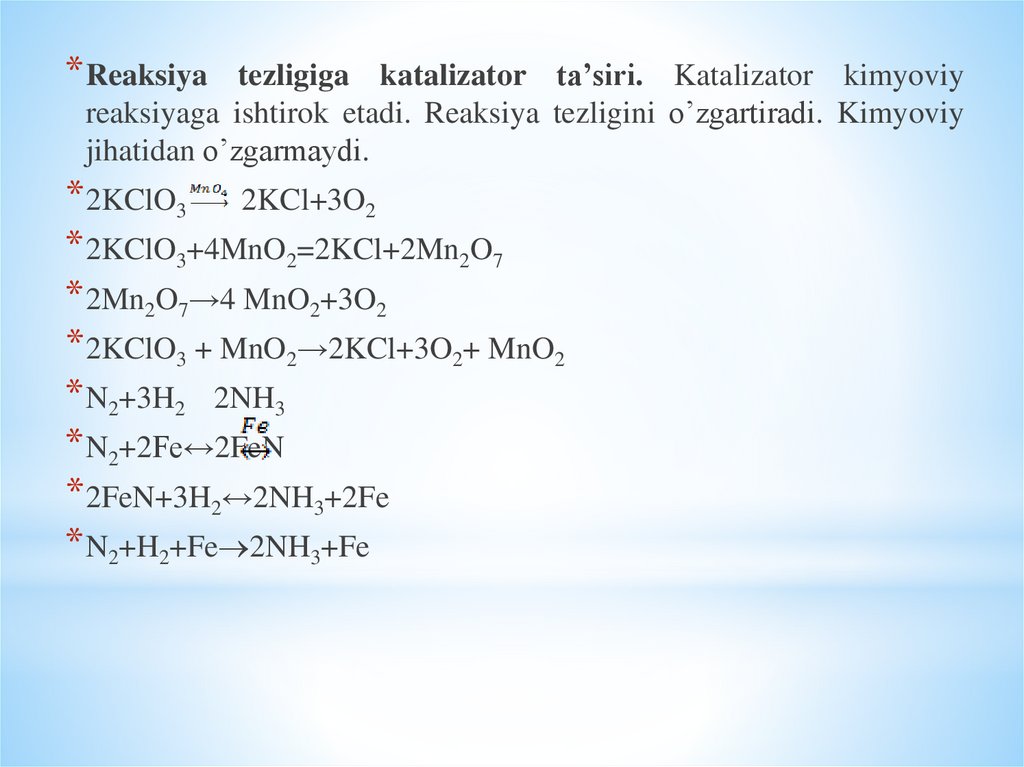 *Bu tenglamadagi to’g’ri va teskari reaksiyalarning