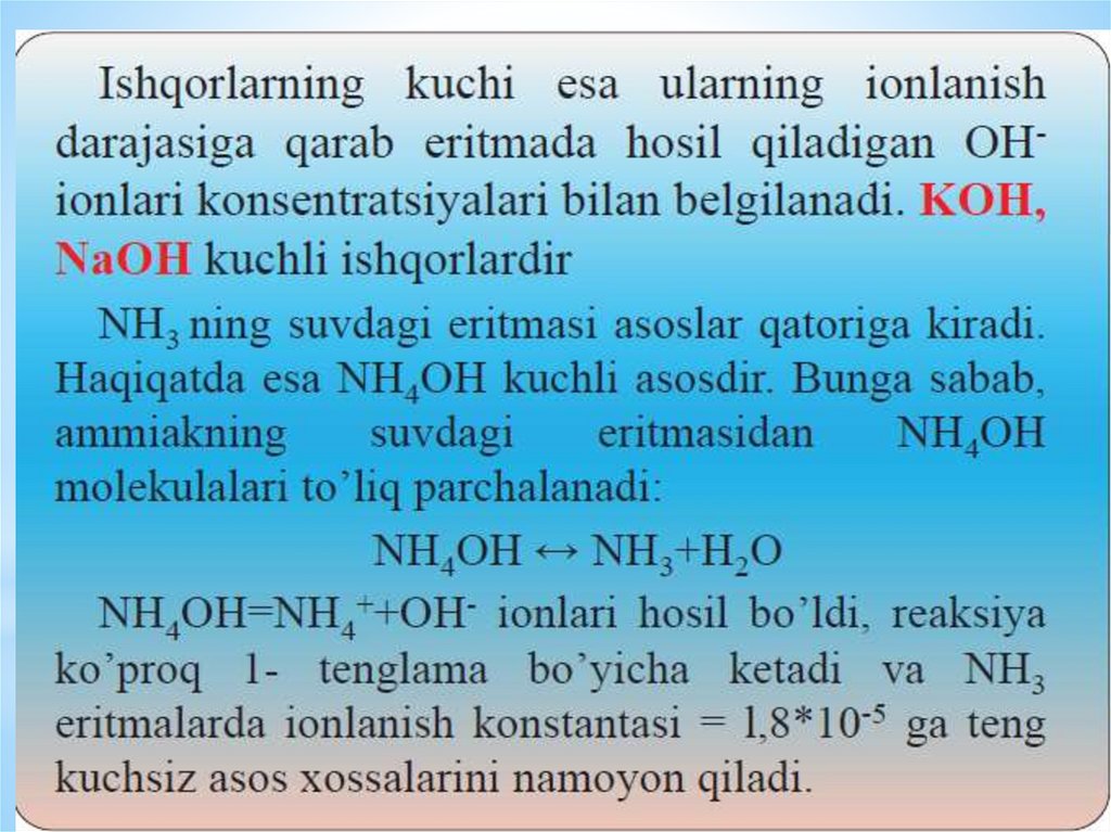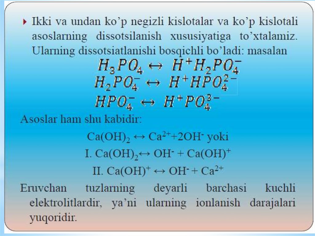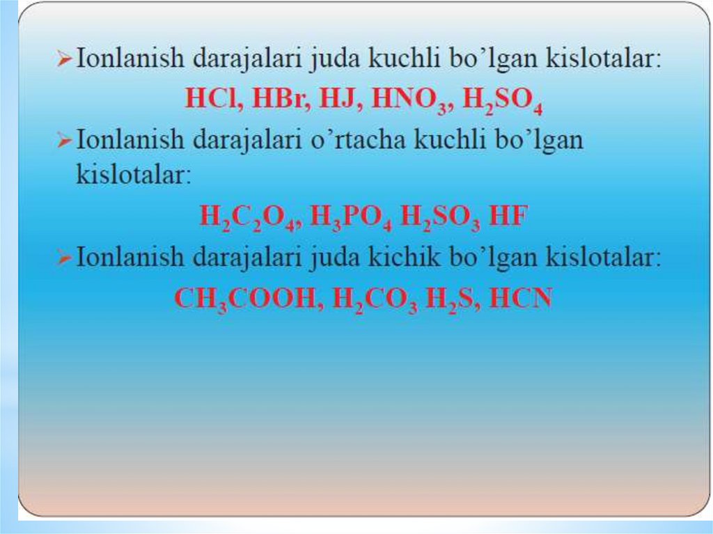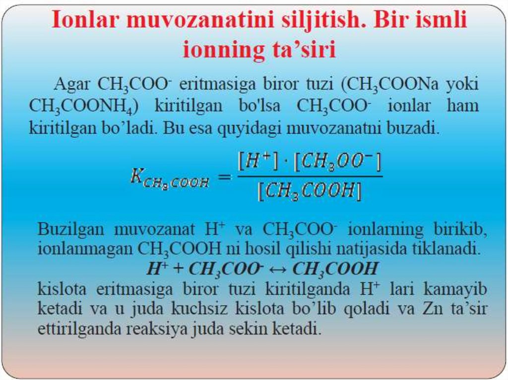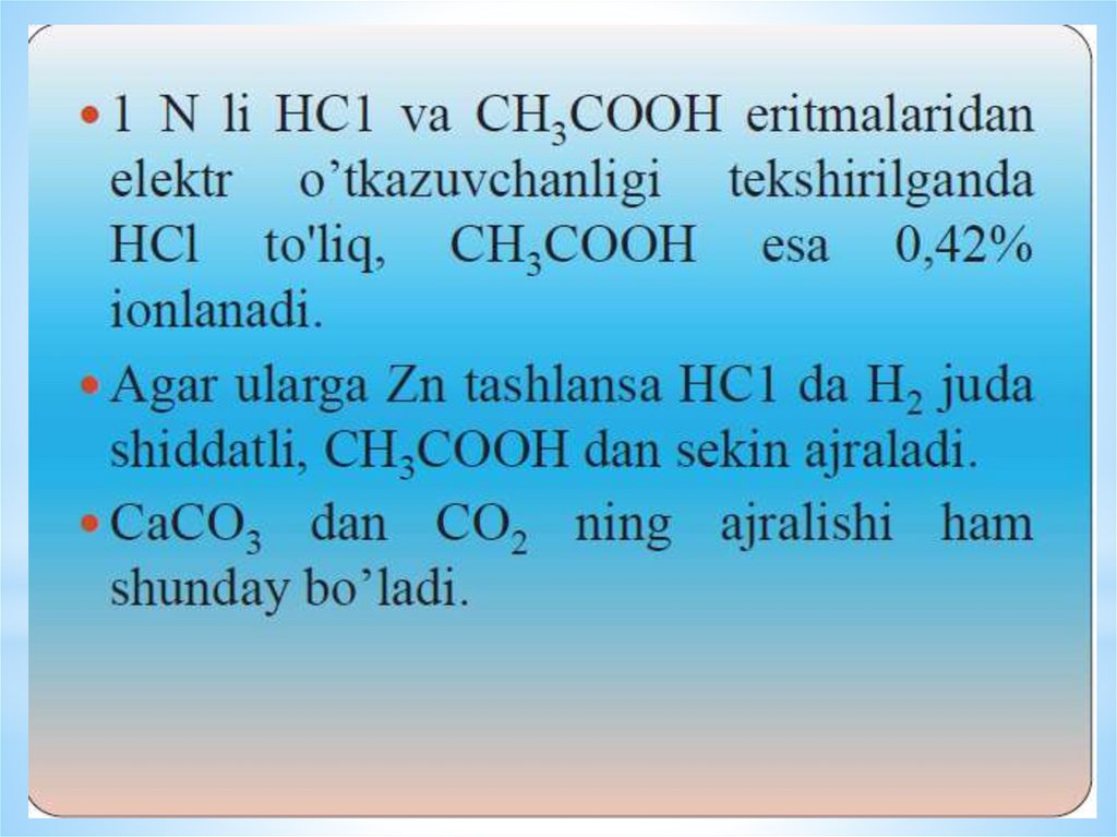 * 2. Kislota – asos muvozanatida eritmalar pH qiymatini va tuzlarning