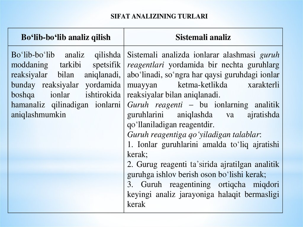 SIFAT ANALIZINING TURLARIBo‘lib-bo‘lib analiz qilish